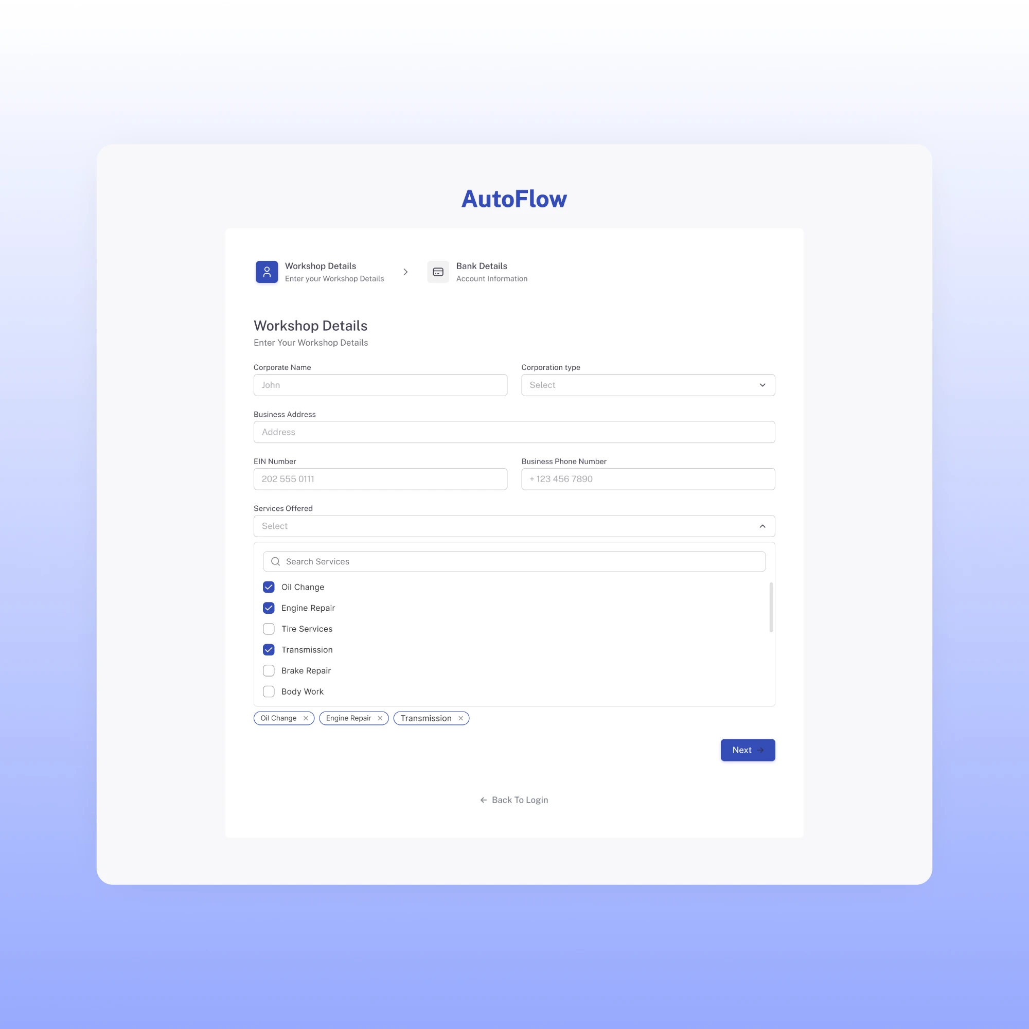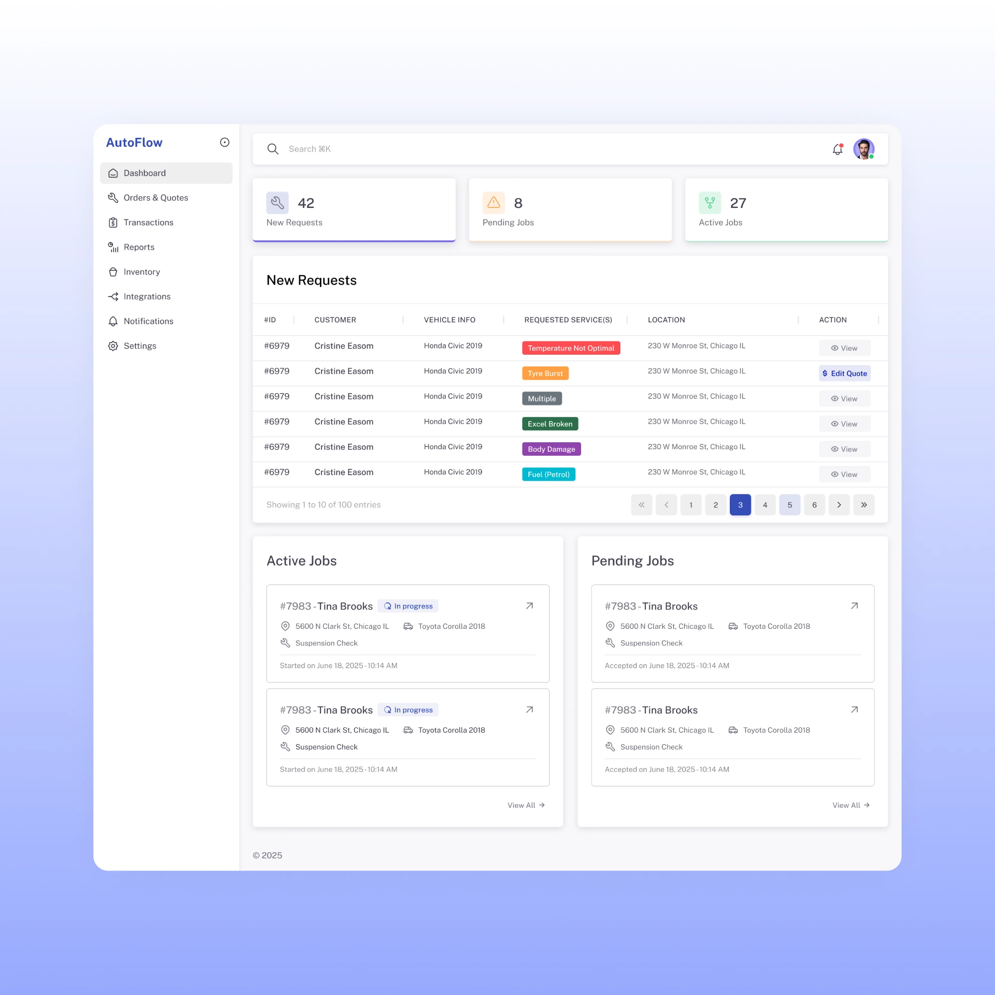 AutoFlow is a comprehensive service-request platform designed to simplify automotive repair management for shop owners, customers, and administrators. This case study focuses specifically on the Shop Owner Panel, emphasizing streamlined job management, financial tracking, clear communication, and intuitive user experience. As the lead UI/UX designer, I developed a dashboard tailored explicitly to automotive workshop owners, enhancing operational efficiency and customer satisfaction.